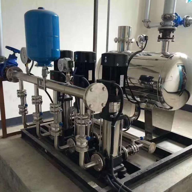 變頻恒壓供水設(shè)備的工作原理:變頻恒壓水泵根據(jù)用戶要求,先設(shè)定給水壓力值,然后通電運(yùn)行,壓力傳感器監(jiān)測管網(wǎng)壓力,并轉(zhuǎn)為電信號送至可編程控制器或微機(jī)控制器,經(jīng)分析處理,將信號傳至變頻器來控制水泵運(yùn)行,當(dāng)用水量增加時,其輸出的電壓及頻率升高,水泵轉(zhuǎn)數(shù)升高,出水量增加,當(dāng)水量減小時,水泵轉(zhuǎn)數(shù)降低,減少出水量,使管網(wǎng)壓力維持設(shè)定壓力值,,在多臺泵運(yùn)行時,逐機(jī)軟啟動,由變頻轉(zhuǎn)工頻至壓力流量滿足為止,實(shí)現(xiàn)了水泵的循環(huán)控制,當(dāng)夜間小流量運(yùn)行時,可通過變頻水泵來維持工作,變頻給水泵可以停機(jī)保壓。