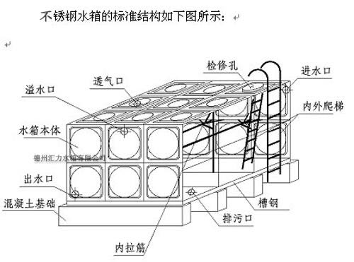 產(chǎn)品簡(jiǎn)介:組合式不銹鋼水箱是建筑行業(yè)內(nèi)采用最廣泛的的玻璃鋼水箱的替代品,組合水箱是不銹鋼水箱模壓板、304不銹鋼拉桿相應(yīng)不銹鋼水管系統(tǒng),由氬弧焊工焊接拼裝而成。規(guī)格是根據(jù)用戶需要裝配,規(guī)格從1噸到500噸。水箱性能穩(wěn)定,符合國(guó)家飲用水衛(wèi)生標(biāo)準(zhǔn)。對(duì)于要擴(kuò)大水箱容量的客戶,客戶不必改建房屋,加裝組合式不銹鋼水箱即可達(dá)到目的,實(shí)用性很強(qiáng),給設(shè)計(jì)部門和施工部門帶來(lái)極大方便。